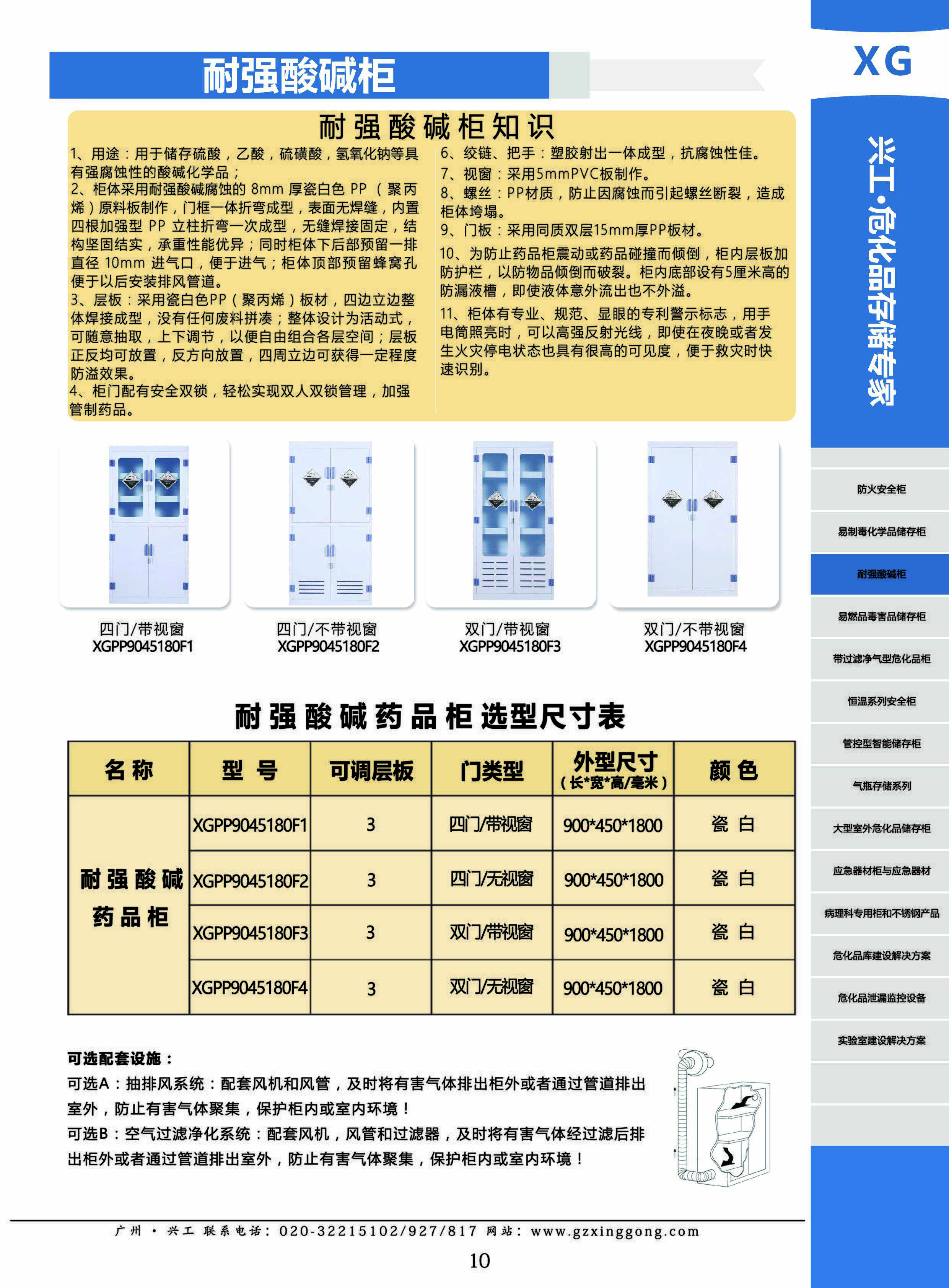 耐強酸堿柜/PP柜 參數: